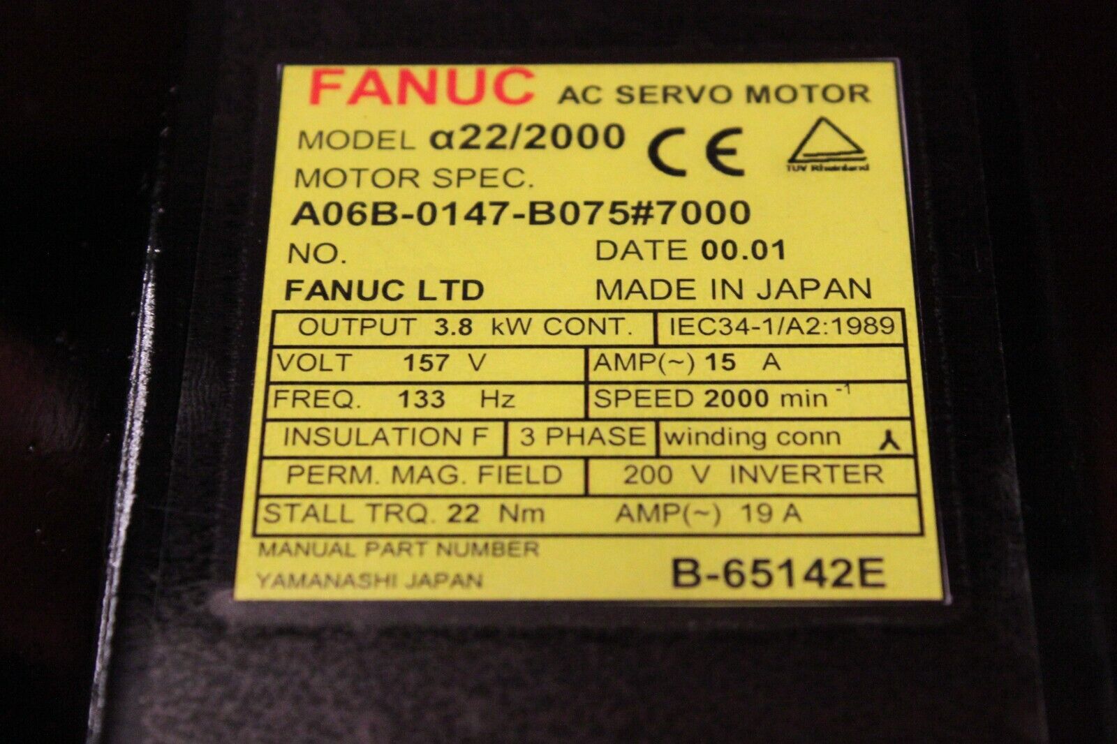 Products / Fanuc / Servo Motors / AC Servo / Fanuc A06B-0147-B075#7000 AC MOTOR A22/2000 A64 PULSE *1 YEAR WARRANTY*