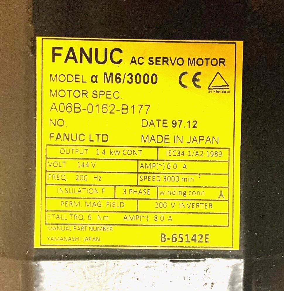 Products / Fanuc / Servo Motors / AC Servo / Fanuc A06B-0162-B177 AC MOTOR AM6/3000 1 YEAR WARRANTY*