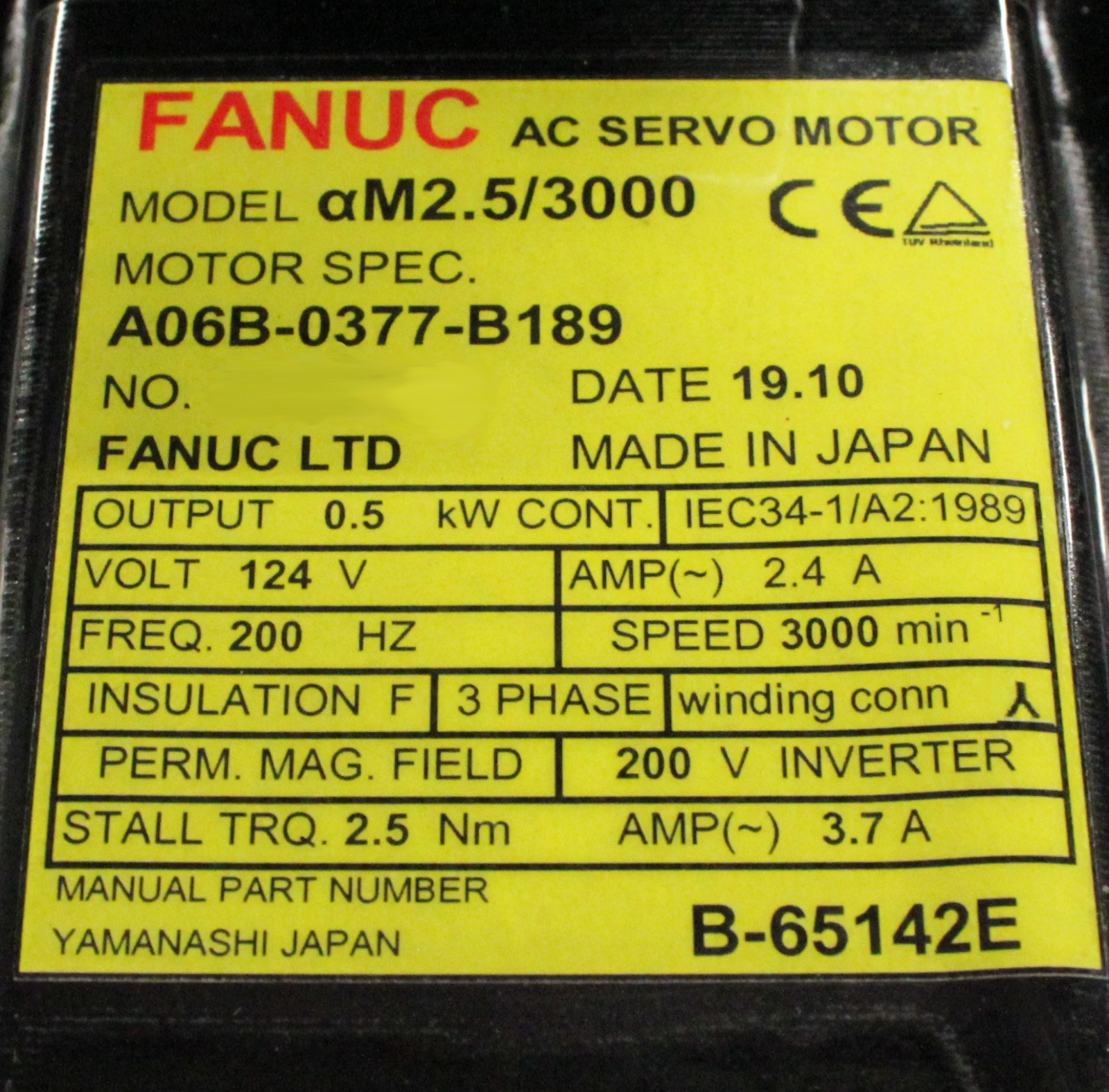 Products / Fanuc / Servo Motors / AC Servo / Fanuc A06B-0377-B189 AC MOTOR AM2.5/3000 A1000+C BR *1 YEAR WARRANTY*