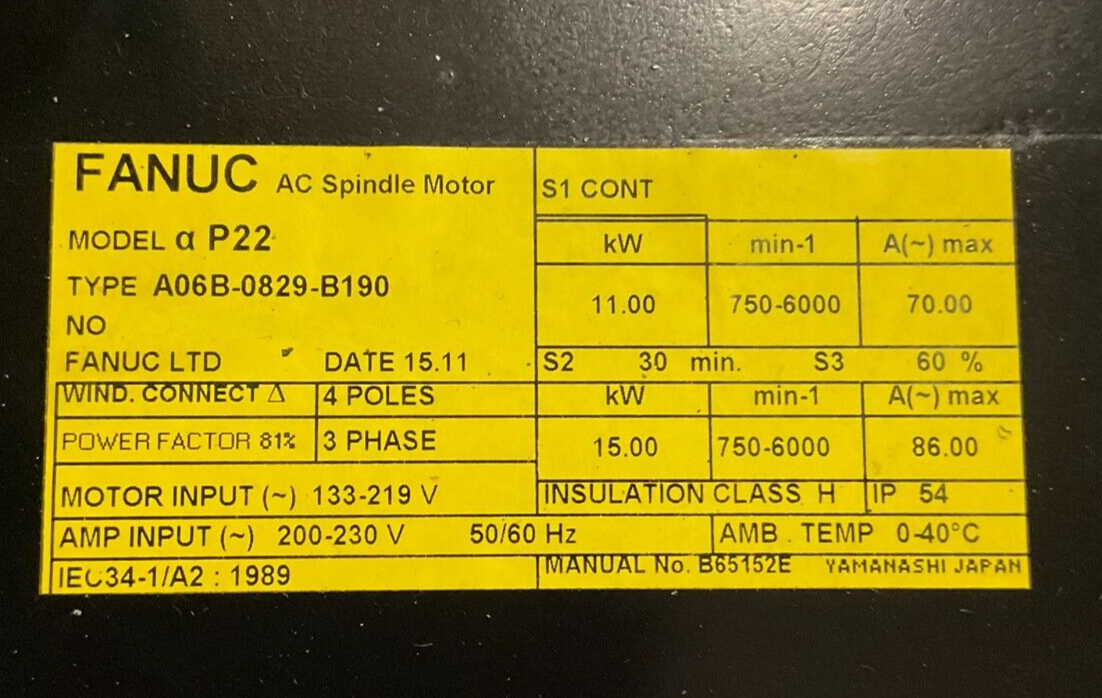 Fanuc A06B-0829-B190 AC SPINDLE MOTOR *1 YEAR WARRANTY*